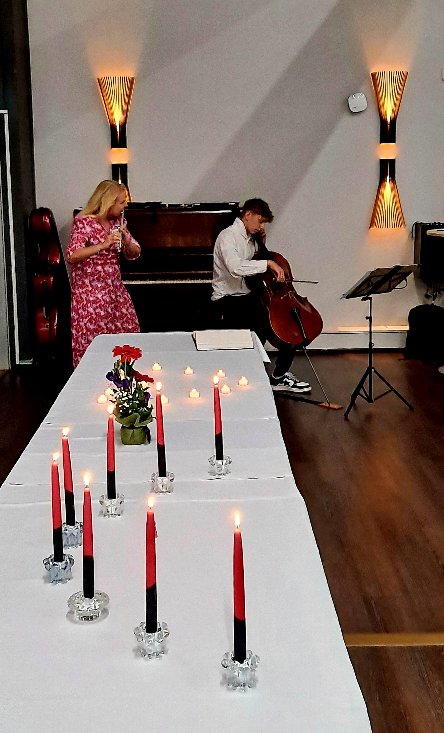 Sukukokouksen aikana ja esitysten välissä Pauliina Fred ja Aron Marstrander esittivät musiikkia.